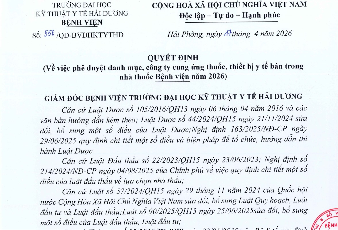 - Thư mời báo giá để căn cứ tham khảo làm cơ sở lựa chọn nhà thầu cung cấp thuốc phục vụ khám chữa bệnh (Số 354/BVTĐHKTYTHD ngày 12/03/2026) 17/03/2026