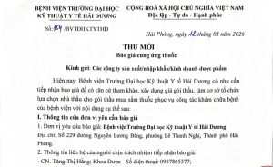 Thư mời báo giá để căn cứ tham khảo làm cơ sở lựa chọn nhà thầu cung cấp thuốc phục vụ khám chữa bệnh (Số 354/BVTĐHKTYTHD ngày 12/03/2026)