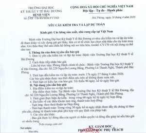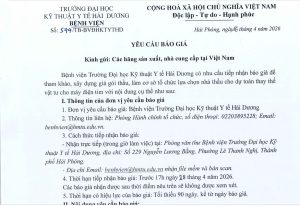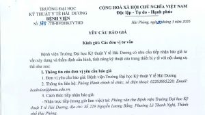 Bệnh viện Trường Đại học Kỹ thuật Y tế Hải Dương có nhu cầu tiêp nhận báo giá tư vấn xây dựng và thẩm định cấu hình, tính năng kỹ thuật của các trang thiết bị (Số 378/TB-BVĐHKTYTHD ngày 23/03/2026)