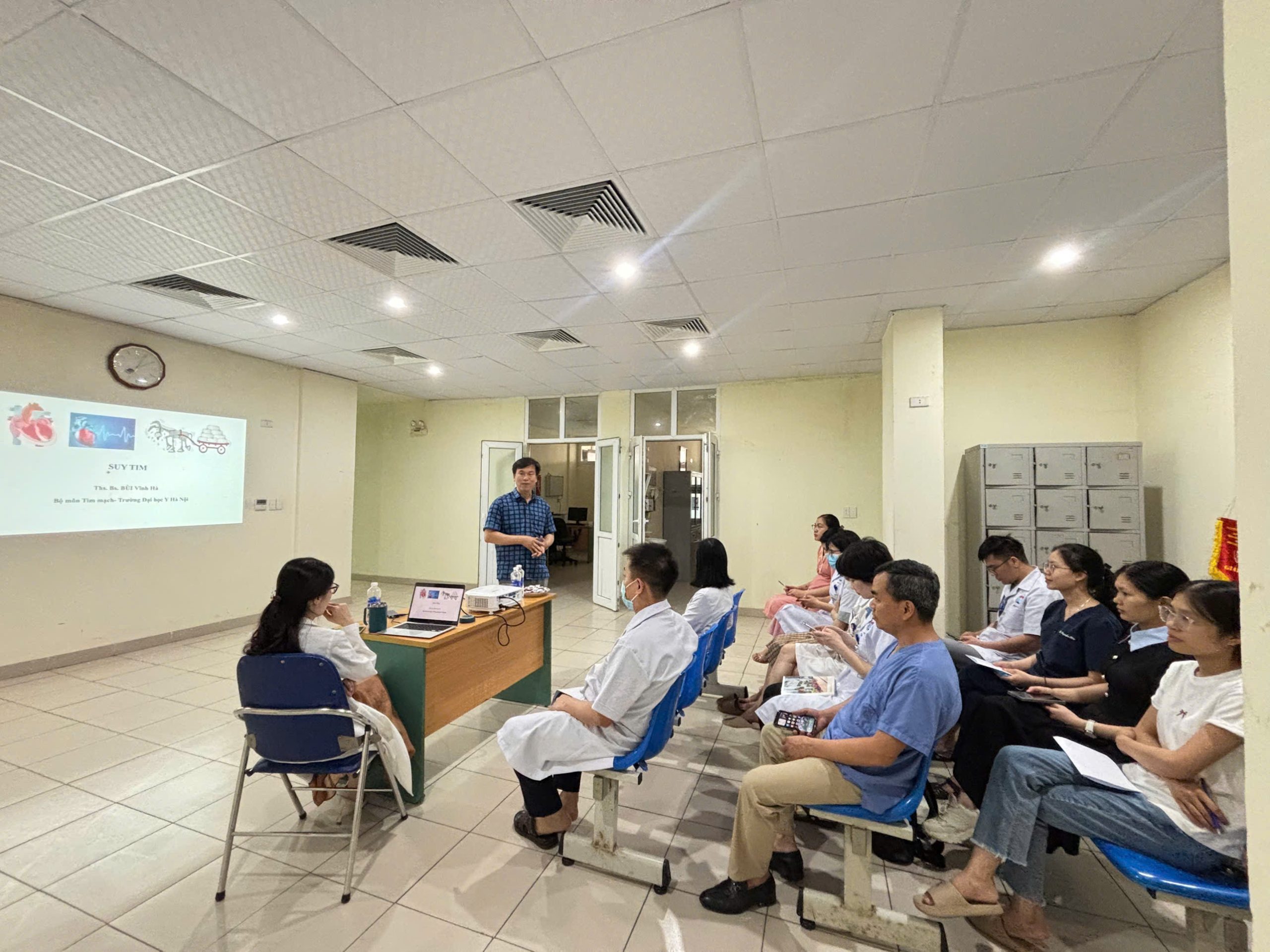 Chiều ngày 27/04/2025, Bệnh viện Trường Đại học Kỹ thuật Y tế Hải Dương đã tổ chức buổi sinh hoạt khoa học với chủ đề “Cập nhật chẩn đoán và điều trị Suy tim”, thu hút sự tham dự của đông đảo bác sĩ, điều dưỡng và nhân viên y tế trong bệnh viện.