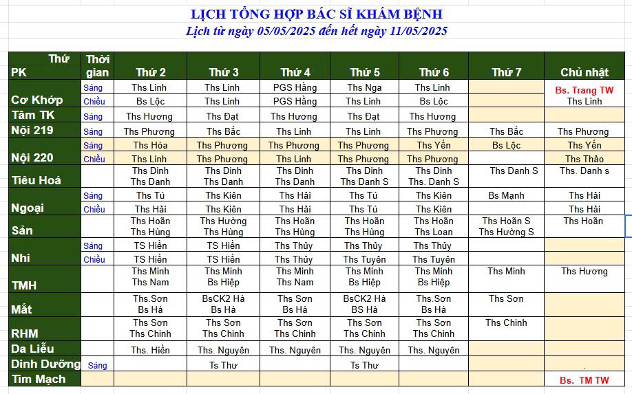 Lịch trực bác sĩ Lịch khám bệnh tuần 05-11/05/2025 Lượt xem: 163 Buổi sinh hoạt khoa học “Cập nhật chẩn đoán và điều trị suy tim” Buổi sinh hoạt khoa học “Tiếp cận chẩn đoán và xử trí hôn mê”