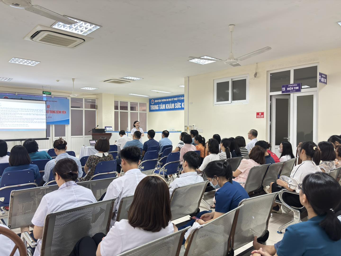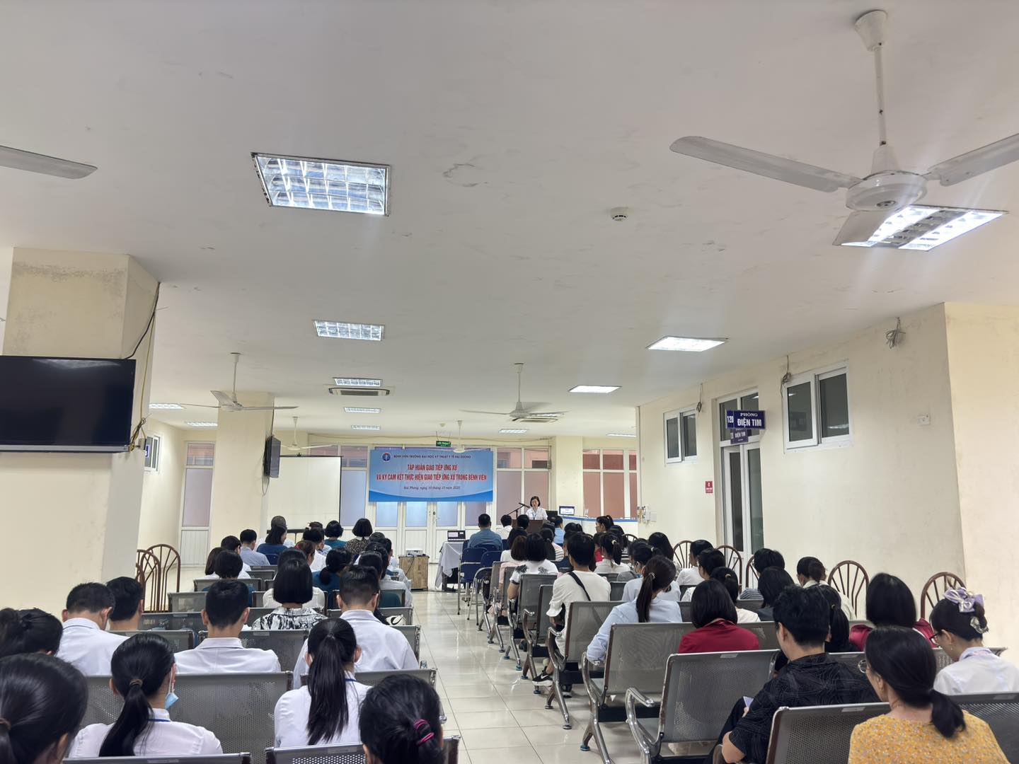Thực hiện Quyết định số 2151/QĐ-BYT của Bộ trưởng Bộ Y tế về “Đổi mới phong cách, thái độ phục vụ của cán bộ y tế hướng tới sự hài lòng của người bệnh”, Ngày 10/10/2025, Bệnh viện Trường Đại học Kỹ thuật Y tế Hải Dương tổ chức buổi tập huấn nhằm nâng cao kỹ năng giao tiếp, ứng xử cho đội ngũ cán bộ, viên chức và người lao động.