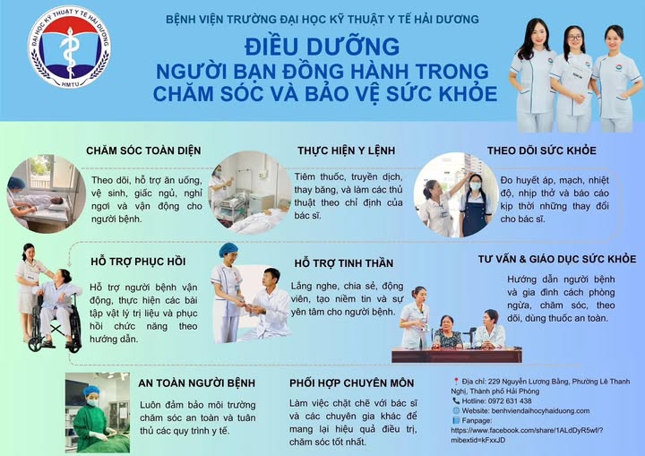 Với phương châm “Chăm sóc bằng chuyên môn – Phục vụ bằng trái tim”, đội ngũ Điều dưỡng của Bệnh viện Trường Đại học Kỹ thuật Y tế Hải Dương luôn không ngừng nỗ lực: