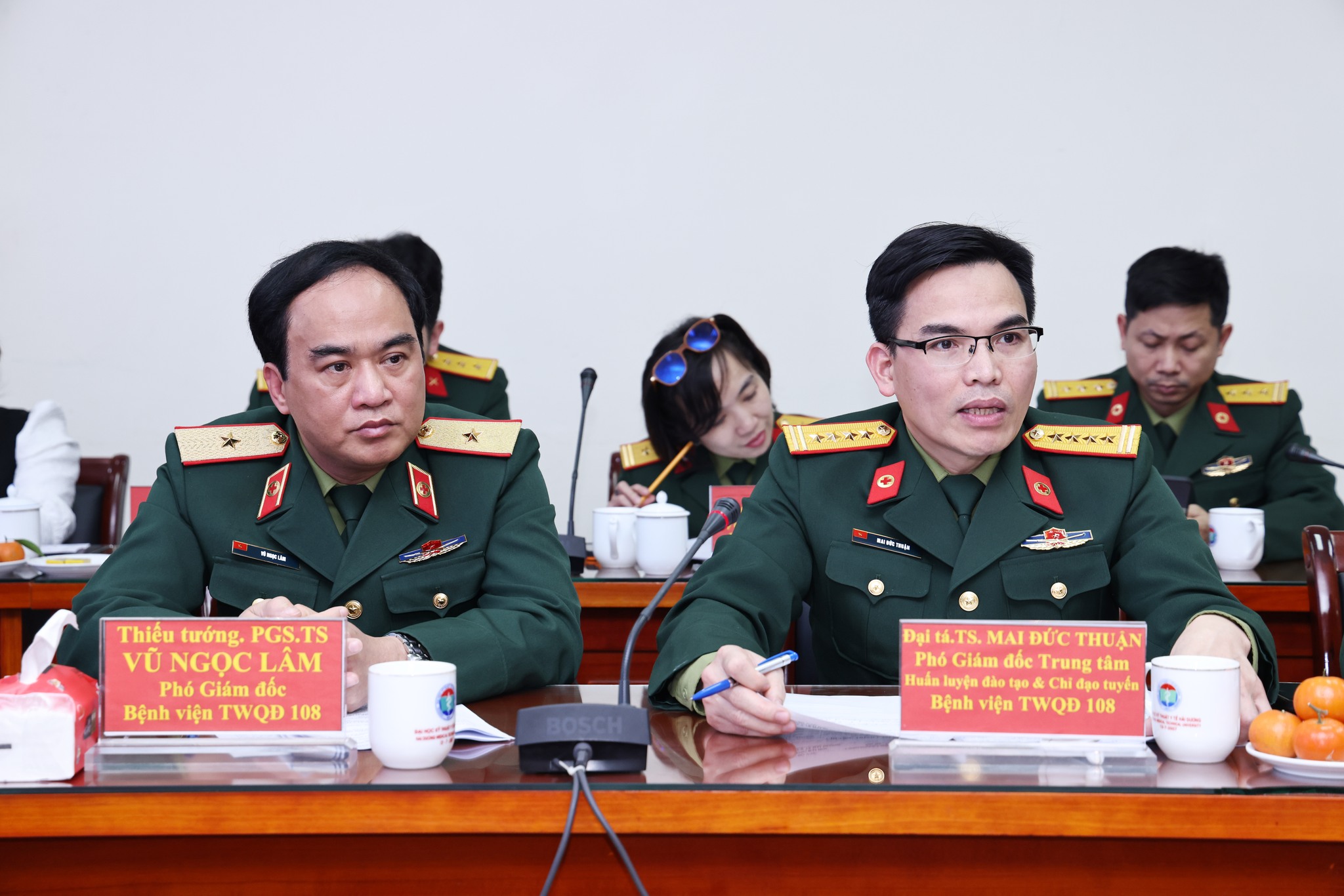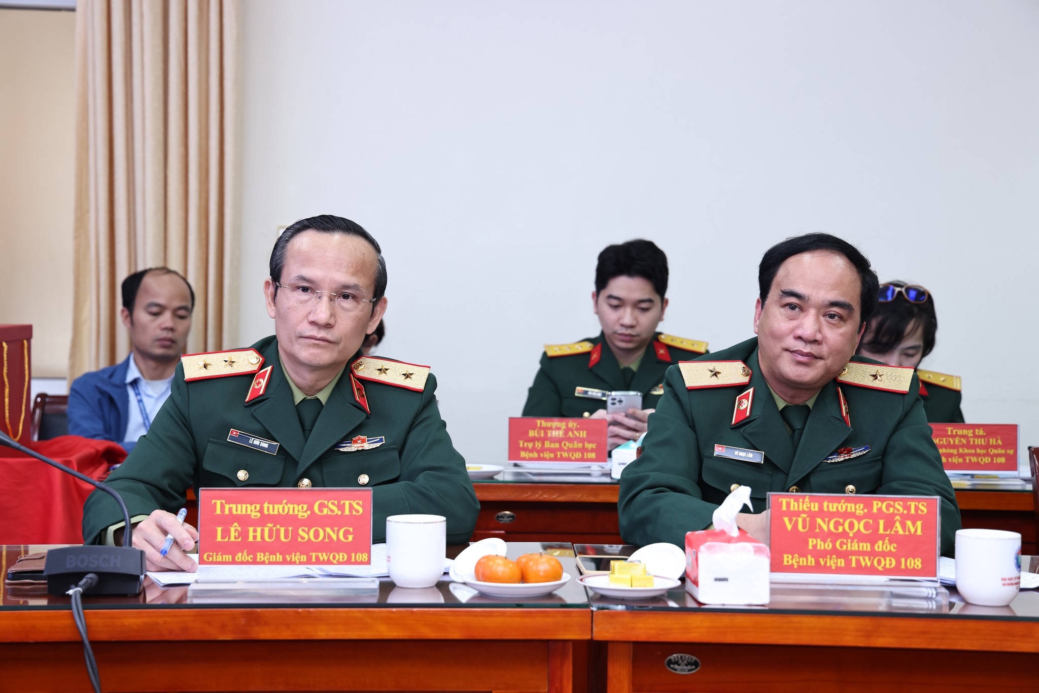 Về phía Bệnh viện Trung ương Quân đội 108 có Trung tướng, GS.TS. Lê Hữu Song – Giám đốc Bệnh viện; Thiếu tướng, PGS.TS. Vũ Ngọc Lâm – Phó Giám đốc Bệnh viện cùng cán bộ quản lý các phòng, khoa chuyên môn.