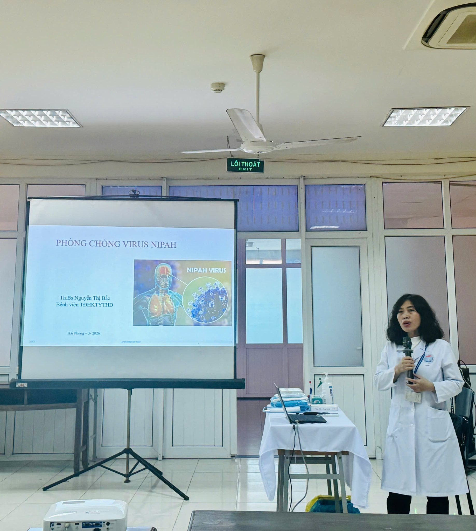 Nhằm cập nhật kiến thức chuyên môn và nâng cao năng lực phòng, chống dịch bệnh Nipah cho cán bộ, nhân viên, ngày 19/3/2026, Bệnh viện Trường Đại học Kỹ thuật Y tế Hải Dương đã tổ chức buổi tập huấn với chủ đề: